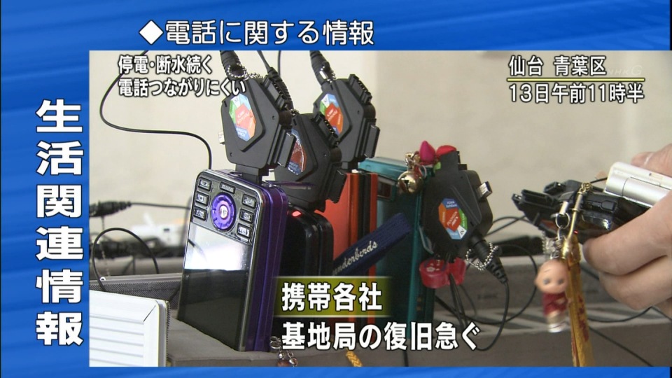東日本大震災が起こって2日後の3月13日の話ですが、テレビで震災の情報を得ていると、被災地で連絡に必要な携帯電話を充電できるシステムを提供しているとの報道がありました。