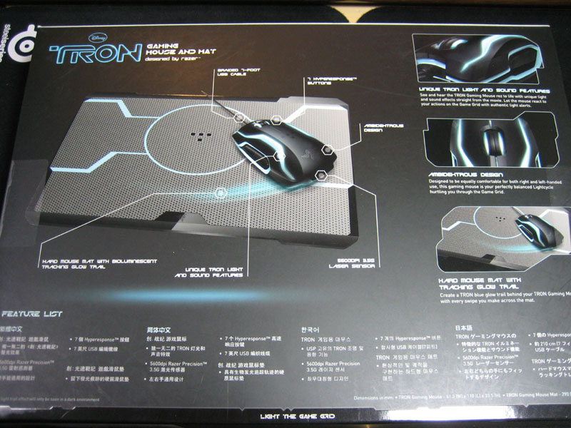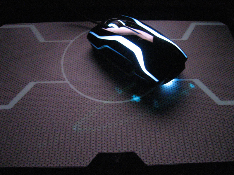 まず、最初にゲーミング用品のTronグッズということですが、PCゲームはたしなむ程度で、このマウス&パッドがモチーフとしている映画、Tron LegacyはブルーレイのレンタルかTV放送待ちなので、予告ムービーしか見ていません。 (追記:後日視聴しました。)