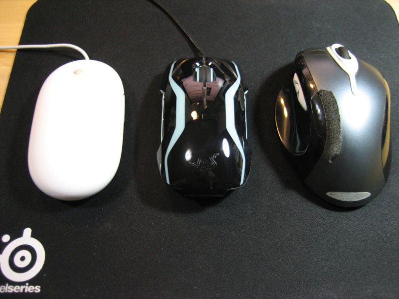 真ん中がTronMouse 左はAppleのMightyMosue、右はLogicoolのMX-1000