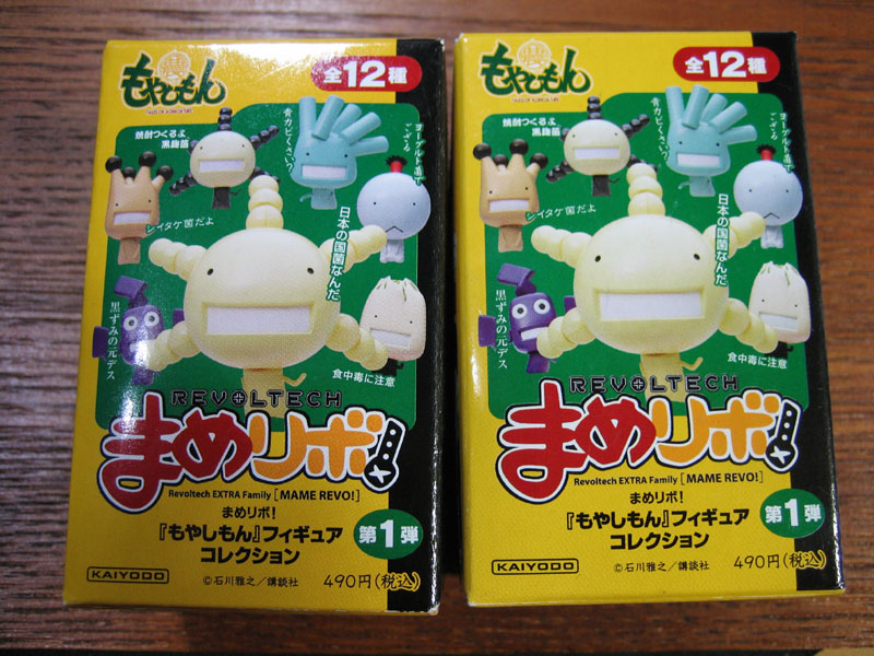 買い物に行った時にセールワゴンを見ていたら、海洋堂ミニフィギュアシリーズ『まめリボ』の、もやしもんフィギュアが定価490円のところ、200円で処分されていたので2つ程買ってみました。