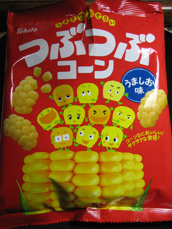 先日、東ハトつぶつぶコーンというスナックを食べたのですが、前回食べた香ばししょうゆ味に続き、うましお味も食べてみました。