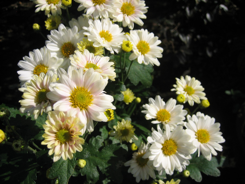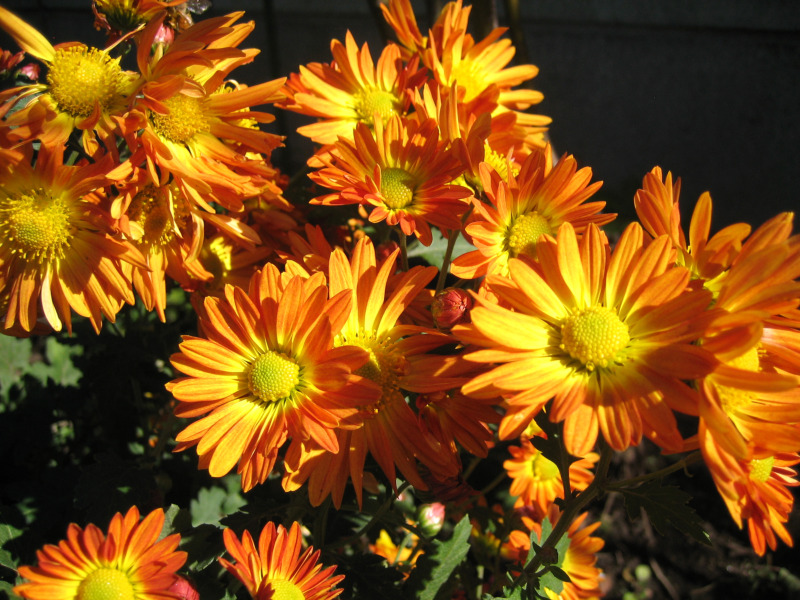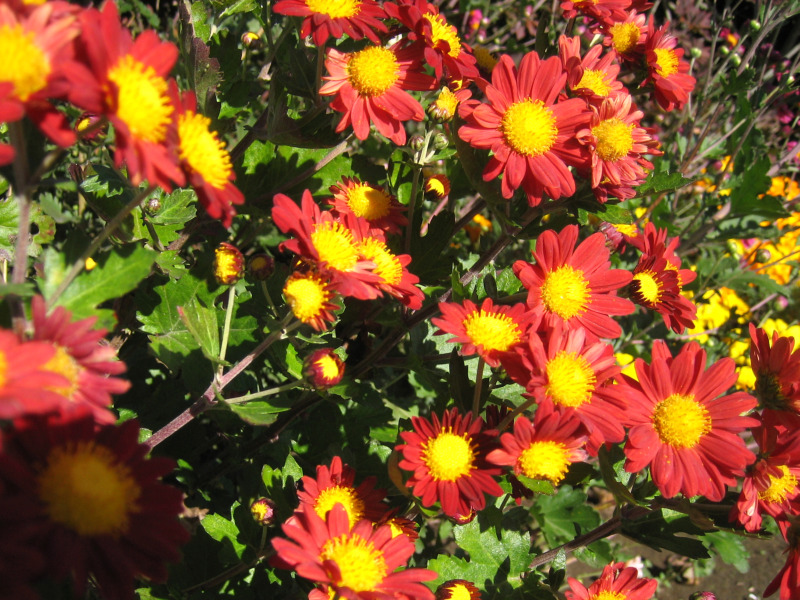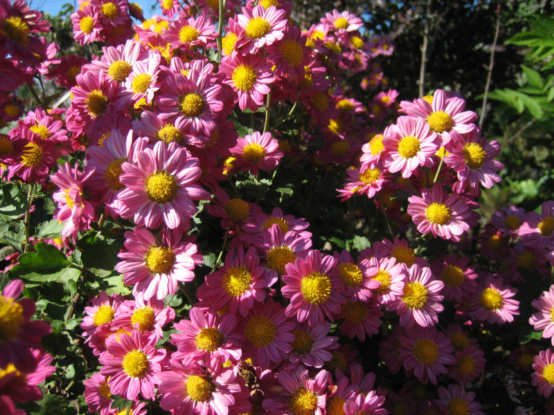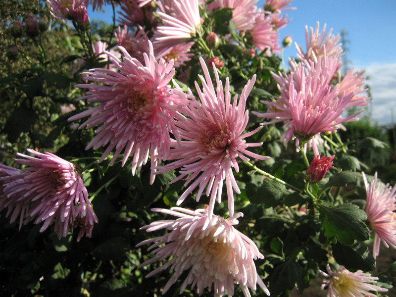最後の花火の様に咲いているピンク色の菊は、私が植えた食用菊ですが、その他は母が植えたもので品種は不明です。
