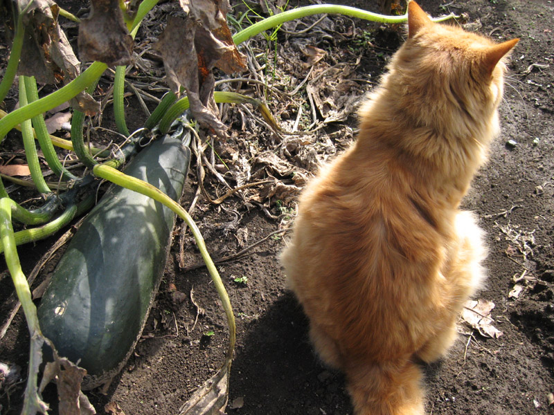 今年、初めて栽培に挑戦して夏に沢山の収穫が出来たズッキーニですが、最後の実を放置して置いたら凄く大きくなりました。