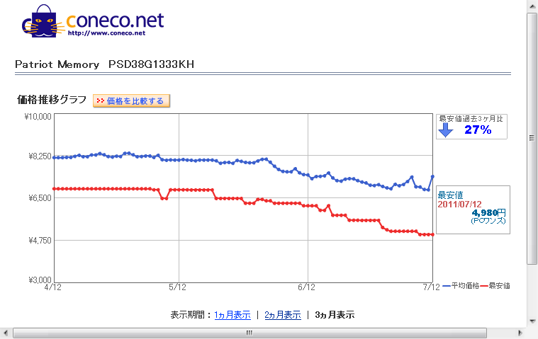 coneco.netでの3ヶ月価格グラフを見ると値下がり具合がよくわかります。