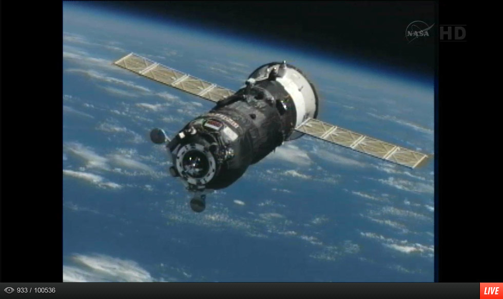 大丈夫なの?という速さでプログレス補給船がISSに近づいて行き、微調整後、あっという間にドッキングしてしまいました。