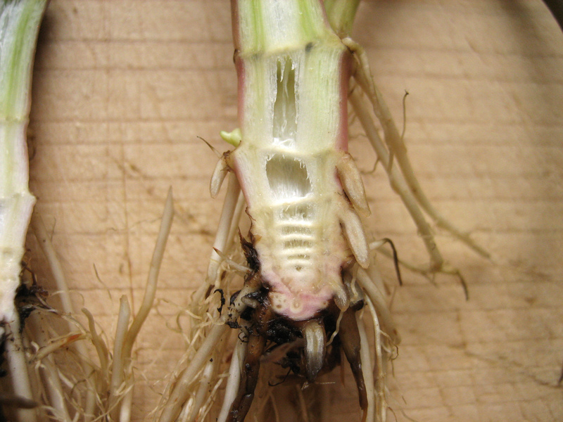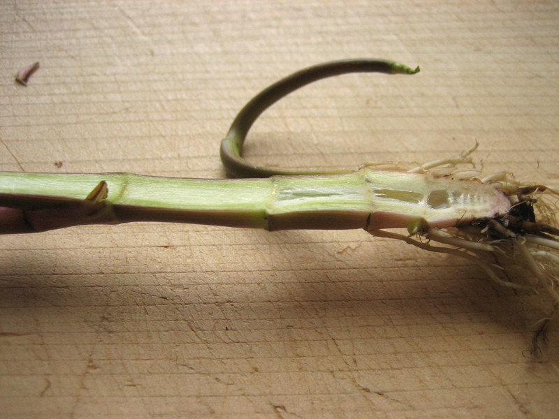 - 茎を切っても中がほぼ詰まっているか、僅かに中空がある程度。