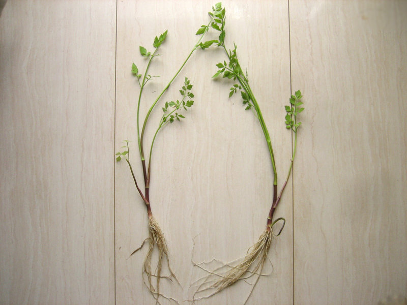 「根ごと持ち帰るのはちょっと・・・」という場合、サンプルとして数本だけ根を採り、セリと確認できたら元に植え戻して葉っぱだけ採取するという方法もあります。