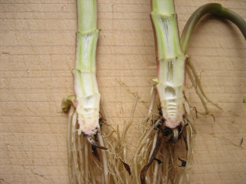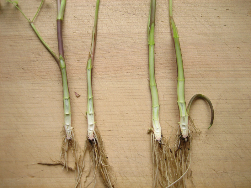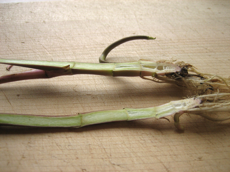 - 根の近くの茎を割ると、タケ状の節がある事がある。