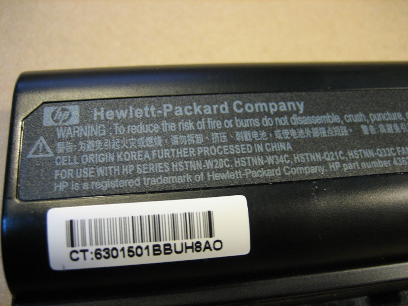元のバッテリーは10.8V 4700m/Whの容量でした。表記を見る限りバッテリーセルは韓国製で、中国で加工されたもののようです。