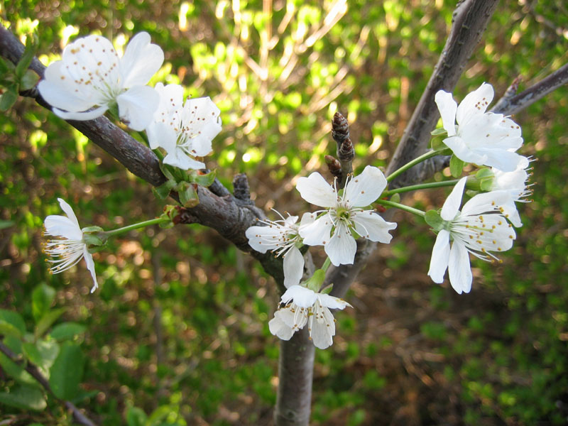 花の数は少なかったですが、佐藤錦とカナディアンチェリーの花粉で人工授粉してみました。果たして、実がつくのでしょうか。