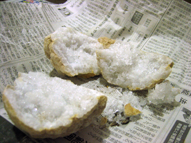 友人が割って貰った水晶のノジュールも綺麗です。