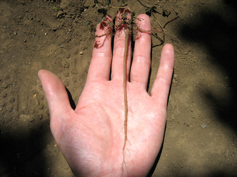 ゴボウなどの根菜類と同じで、根っこが長く真っ直ぐ伸びていく為には、柔らかい土が必要な様で、固い土の所では根が太くて短かったり、分岐したりしていました。