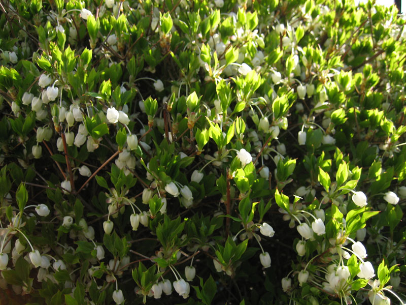 スズランのような花です。これは白い花ですが、ドウダンツツジの品種の中にはオレンジ色や赤い花を咲かせるものもあります。それらも今年買ってきて育てていますが、今年の花は無理そうです。