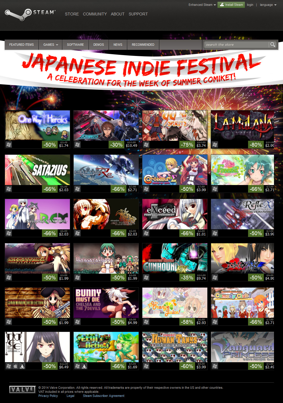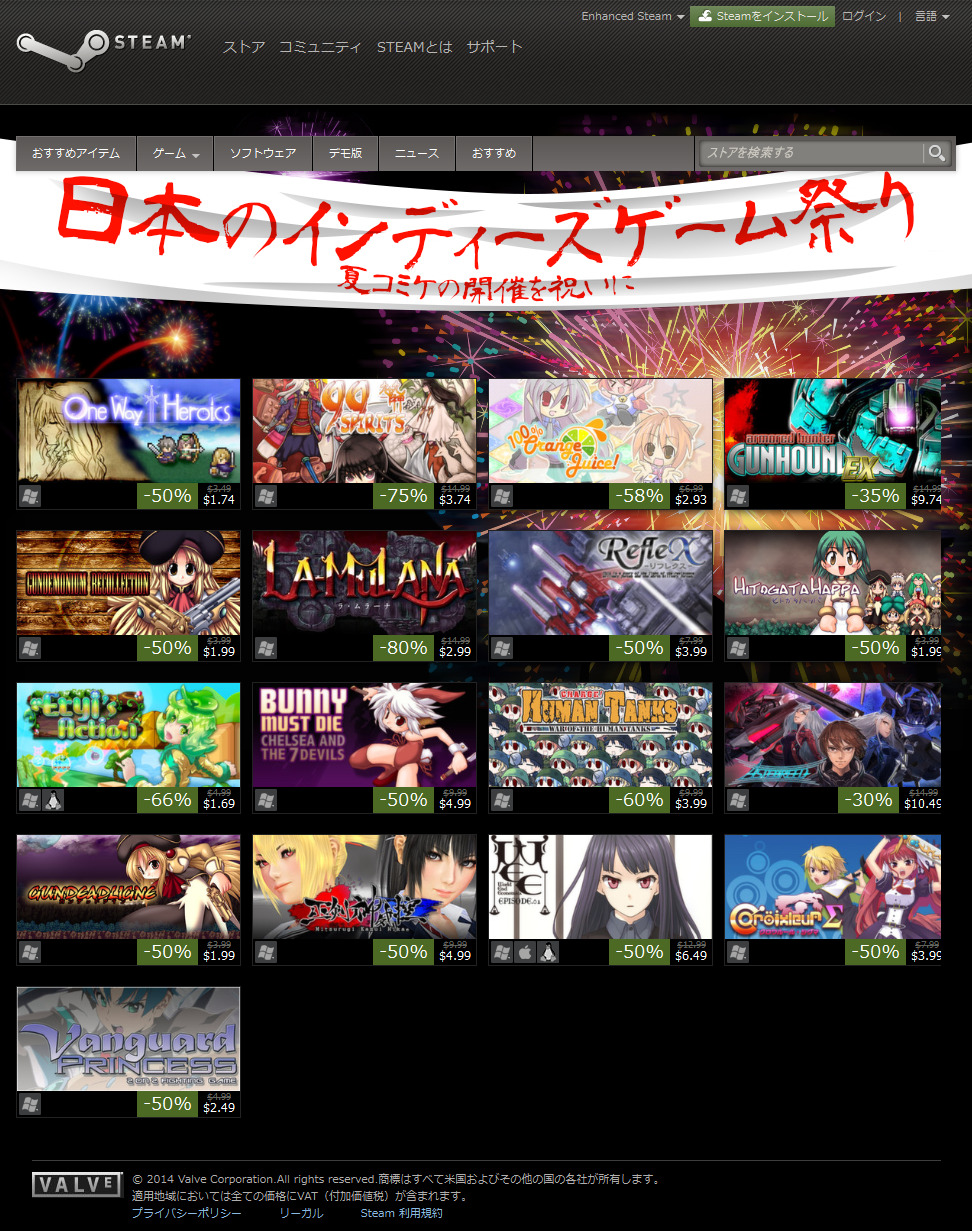 8月15日~17日にかけて開催される、夏のコミックマーケットC86(以下:コミケ)に合わせて、Steamで連動セール『日本のインディーズゲーム祭り(Japanese Indie Festival)』が開催されています。