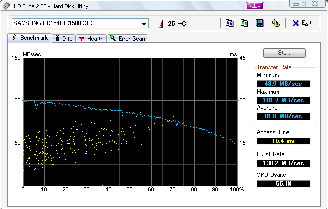 次にHD Tune2.55の結果です。