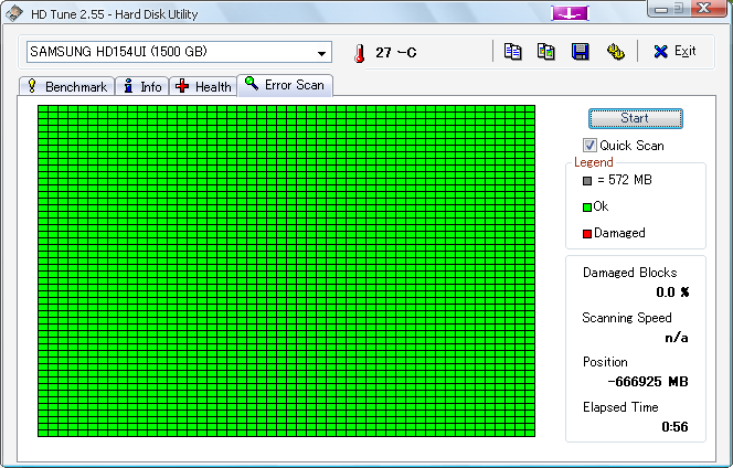 最後にHD Tuneで不良セクタが無いか調べました。
