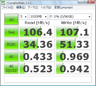 まずは、CrystalDiskMark3.0.1aの結果です。