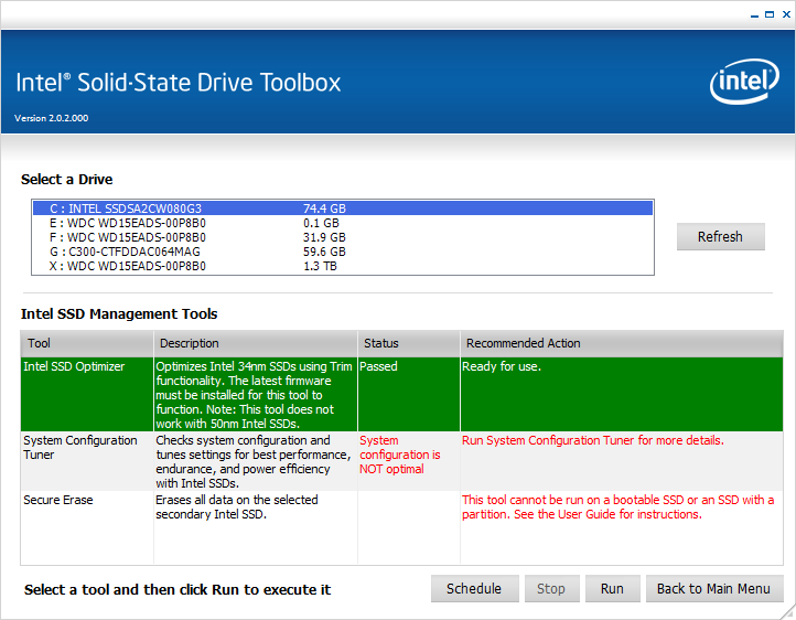 とりあえずHD Tuneのグラフは置いておいて、次にIntelが配布しているSSDの管理ツール&リフレッシュツール、Intel Solid State Drive Toolboxをダウンロードしてインストールすることにしました。落としたバージョンは2011/03/23日配布のv2.02です。使い方は以下のサイトを参考にしました。