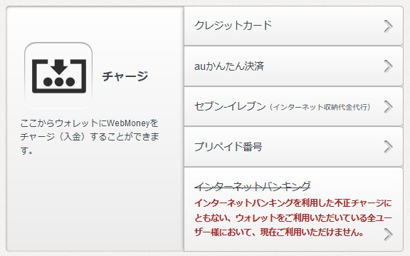 尚、『インターネットバンキング(銀行口座からのチャージ)』は、不正チャージが相次いだ影響で使用出来なくなっていました。