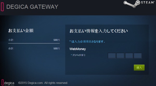 対応を確認し、ウェブマネーウォレットからSteamウォレットへのチャージを試みましたが、結果は、2015年1月現在「プリペイド番号に対応」、「ウェブマネーウォレットには非対応」という事が判明。