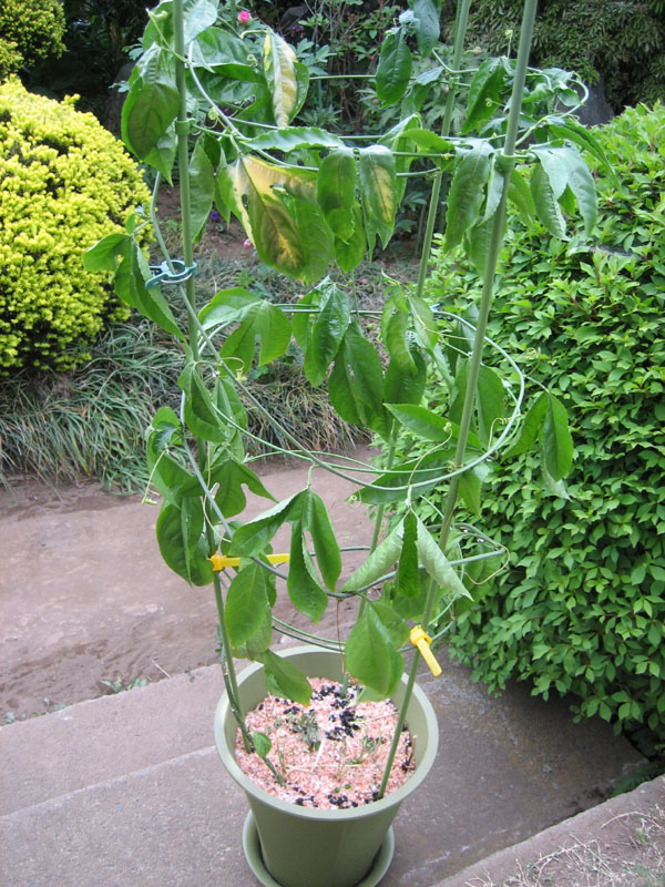 2年位前に、スーパーで買ってきたパッションフルーツ。その時採取した種を土に蒔いて発芽した苗を、ずっと部屋で育ててきました。大きくなってきてから部屋で育てるには不向きだと言う事が判ったので外に出すことにしました。