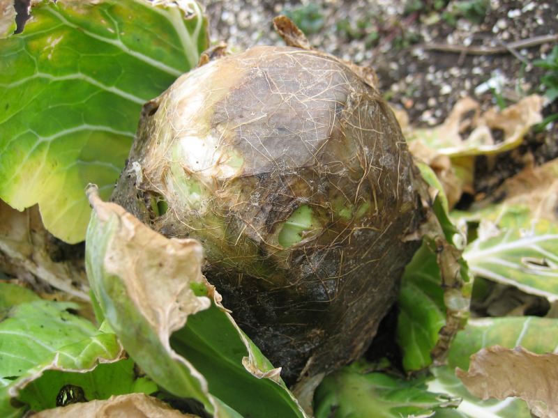 傷んだ葉を何枚か剥いてみると、青々としたキャベツが出てきました。
