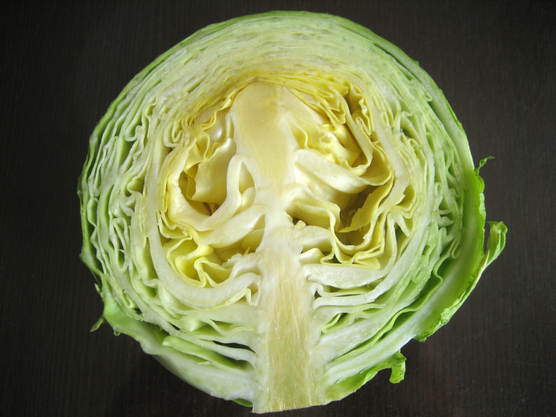 一番大きなキャベツを半分に切った断面がこちらです。