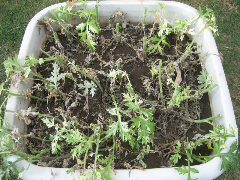 鉢植えのヨモギは、1ヶ月で1m程度まで大きく成長しました。