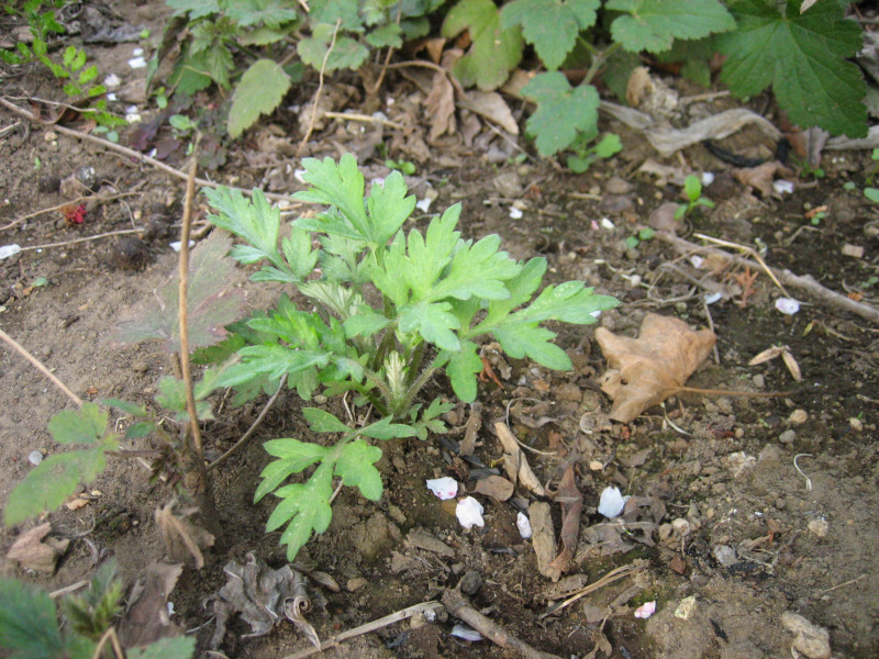 4月3日に園芸作業をしていたら、2月に通常ヨモギが生えてきた一角に、また通常ヨモギが生えてきている事に気付きました。