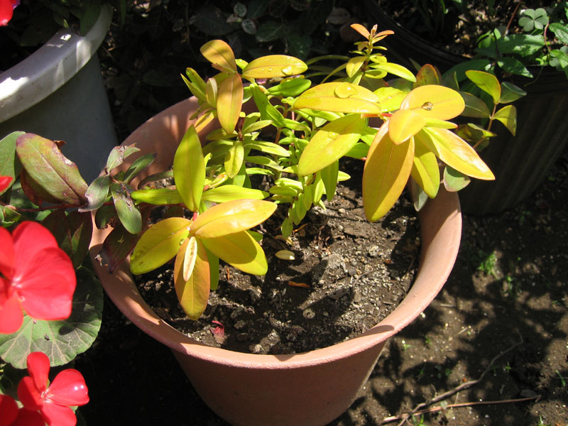 葉っぱが綺麗ライムグリーンのヒペリカムです。