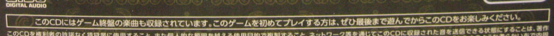 「このCDにはゲーム終盤の楽曲も収録されています。このゲームを初めてプレイする方は、ぜひ最後まで遊んでからこのCDをお楽しみ下さい。」
