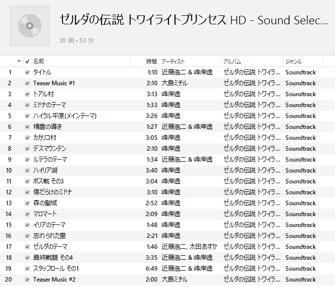 個人的には、ハイラル平原(メインテーマ)と、マロマートの音源が手に入っただけでも収穫でした。