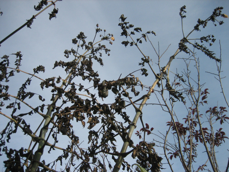 しかし、地植えの皇帝ダリアが寒さに弱いことをスッカリ忘れており、凍らせてしまいました。
