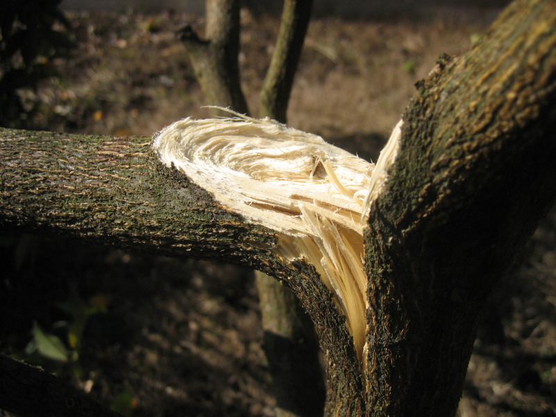 折れた状況としては、降った当日は折れなかったものの、積もった雪が解けないまま木に負荷を与え続け、翌日折れてしまった感じです。