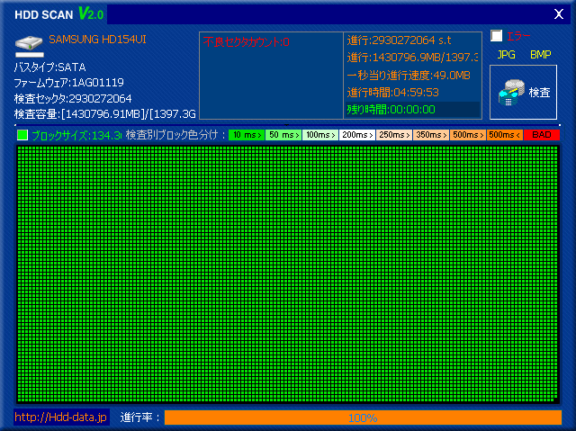 Home > ブログ > レビュー - PCパーツレビュー > SamsungのHDD、HD154UIの不良セクタをチェックする。