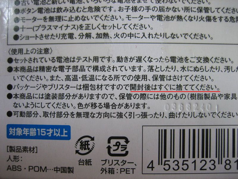 ●パッケージやブリスターは梱包材ですので開封後はすぐに捨ててください