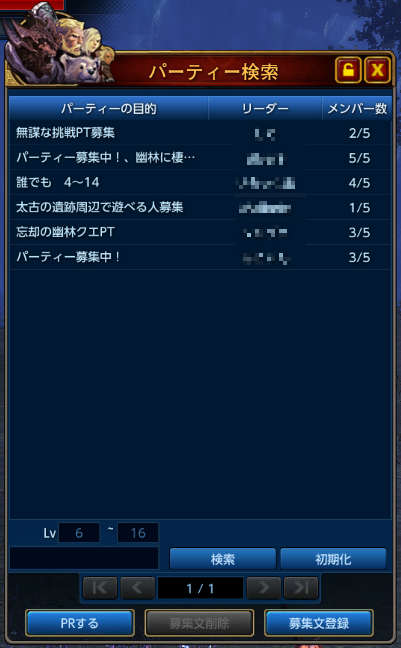 パーティ検索窓