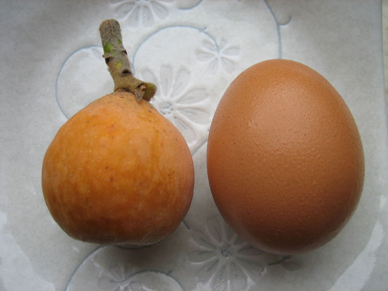 完熟になるまで待ったので、ハリは無くなっています。大きさは卵より一回り小さい位で結構大きな実になりました。