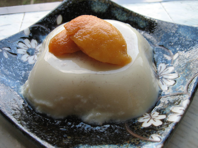 固まった後、盛り付けて試食。香りは杏仁豆腐と同じ香りがしました。ただ、味は・・・サッパリ薄味になってしまい、もっと沢山砂糖をいれるべきだったと反省。急遽シロップをつくってかけてみたら美味しくいただけました。