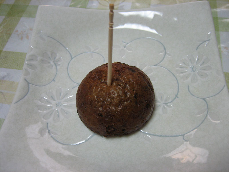 上の写真では一個の大きさが判りにくいので、爪楊枝をさした写真も用意しました。