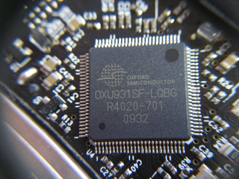 公式HPに飛んでこのチップのデータシートを見ましたが、確かにOXU931SFは、USB2.0とSATAを橋渡しをする高性能コントローラでした。