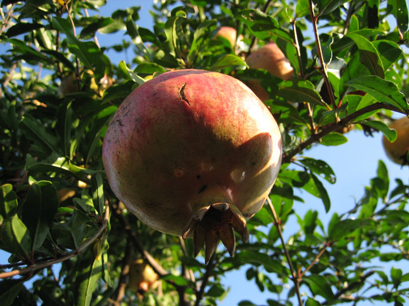 実はこのザクロ、死んだ祖父が15年くらい前に何らかの理由で一度根元から切り倒した物です。それがまた下の写真のように大きくなって、ついに今年沢山の実をつけました。