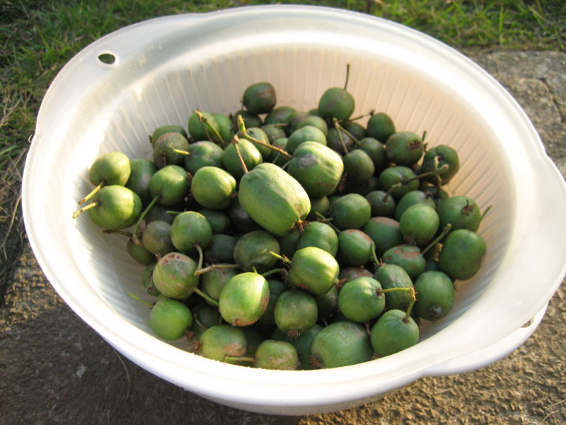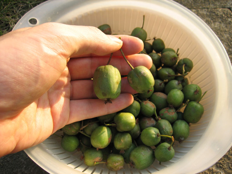完熟したものの味はキウイフルーツそのものです。一口キウイといったところでしょうか。普通のキウイフルーツの木もありますが、これはこれで良いものです。