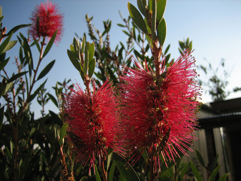春にも咲きましたが、秋にも鮮やかなブラシ状の赤い花を咲かせます。春の時は沢山のミツバチやその他のハチが蜜を集めに来ていたり、オオスカシバが蜜を吸いに来たりして羽音をブンブン鳴らしていましたが、秋は昆虫がほとんど来なくて静かです。