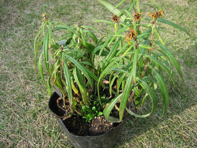 花季が終わって処分特価になっていた、姫ひまわり(柳葉ひまわり)、品種名ゴールデンピラミッドです。
