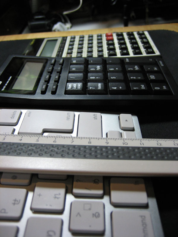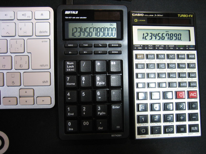 大きさ比較 左「Apple Keyboard」、中「BSTKD01」、右CASIO関数電卓fx-360MT