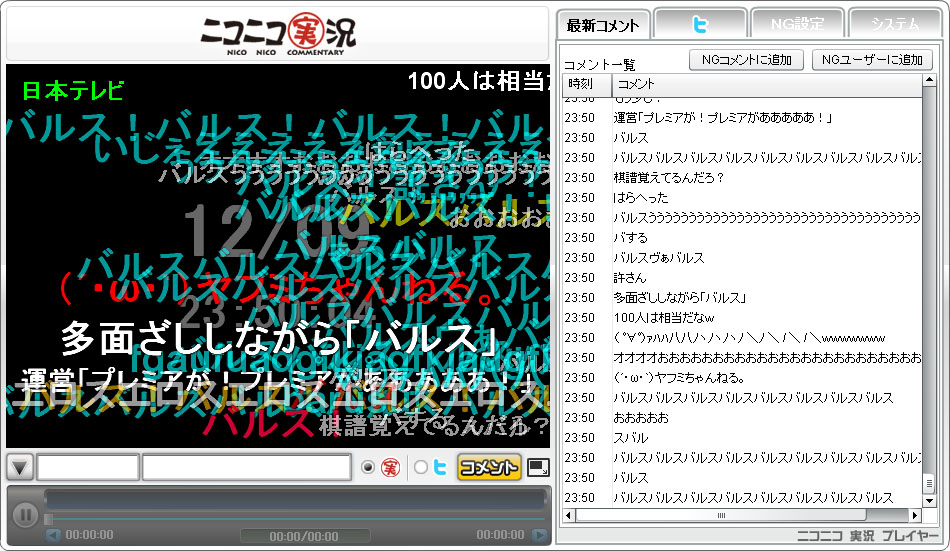 結局はコメントが多すぎて処理が追いつかなかったものと思われ、ニコ生もTwitterと同じく半陥落したと言って良い状態でした。