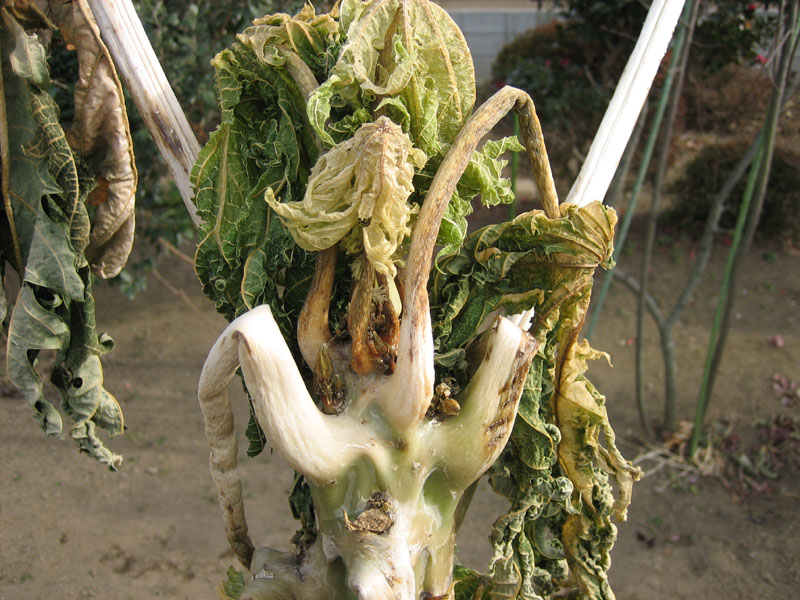 茎はブヨブヨとしており、中の細胞が破壊されているのが判ります。