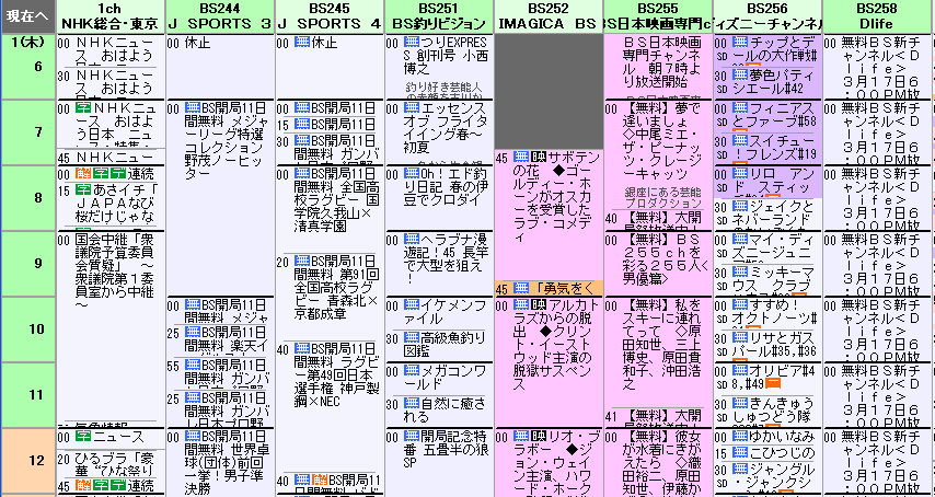 ※上のEPG画像に、地上波NHKが混ざっていますが、非表示にするのを忘れただけです。