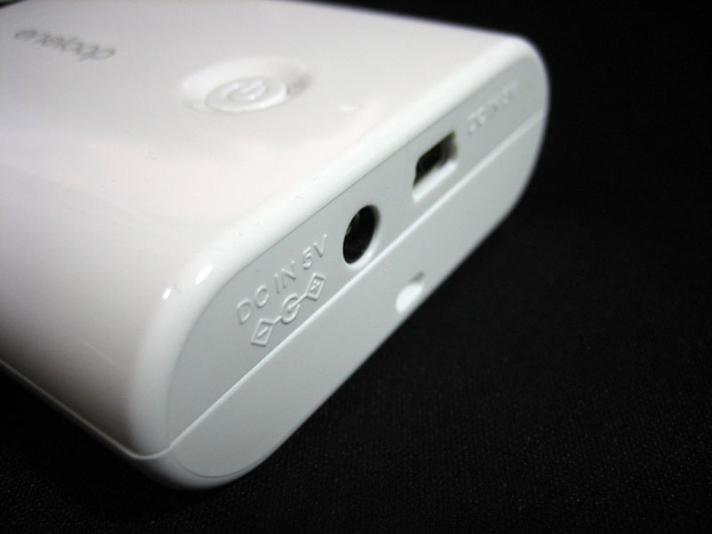 使った充電ケーブルは付属品のケーブルではなく、市販の巻き取り式のUSB充電ケーブルを使いました。充電は、モバイル機器につなげた後、電源バッテリー表面の電源ボタン(DC出力ボタン)を押すと充電がONになります。もう一回電源ボタンを押すとOFFです。